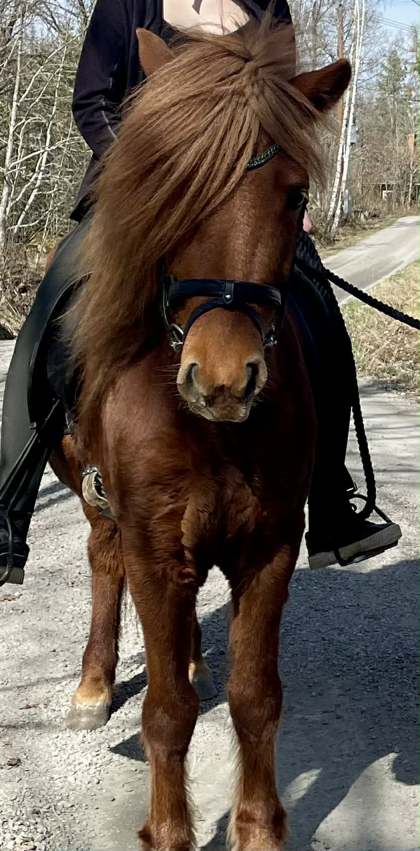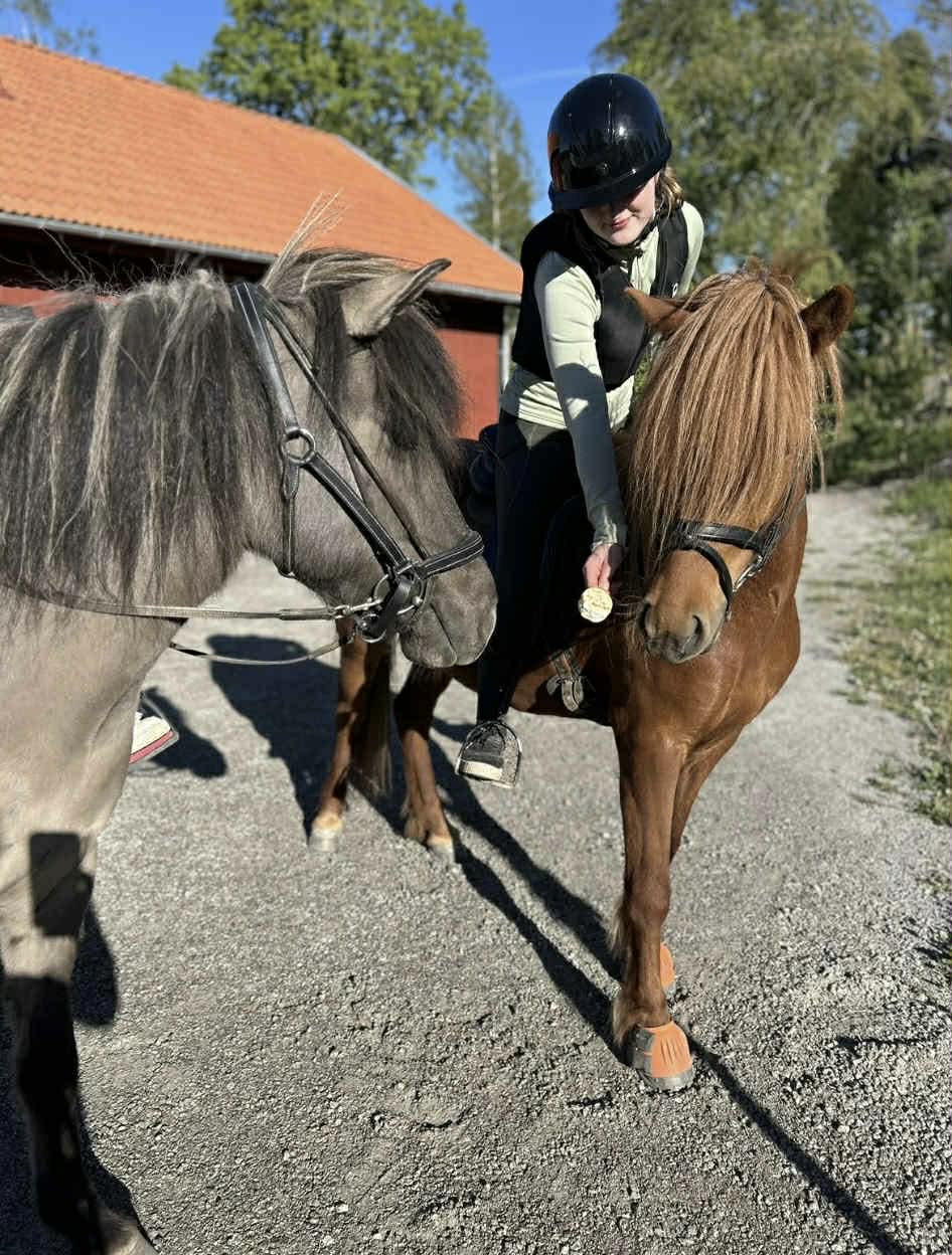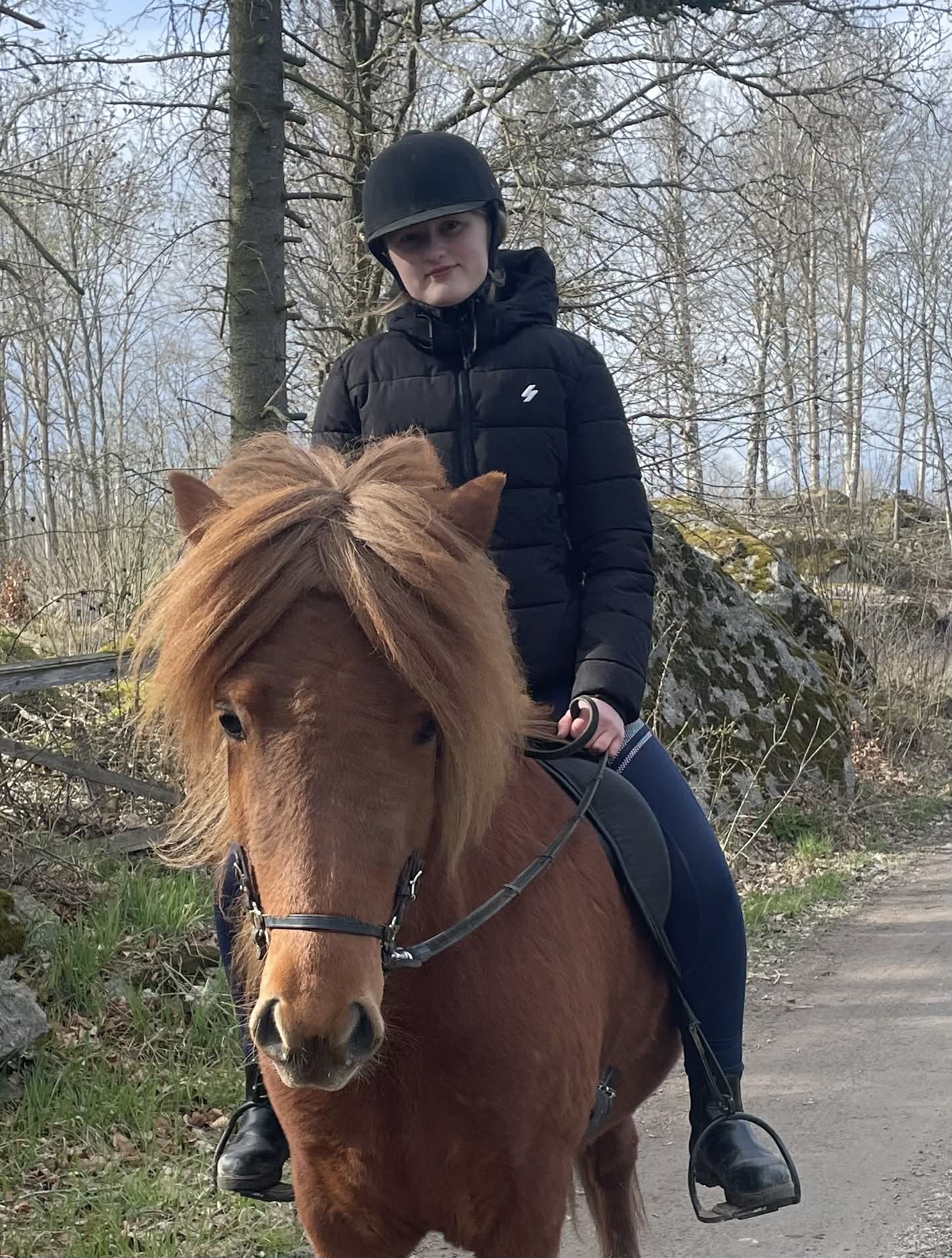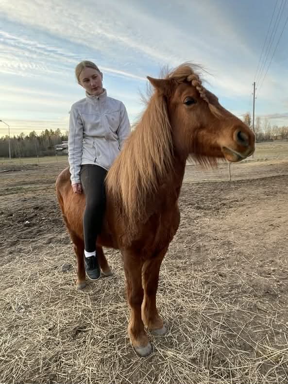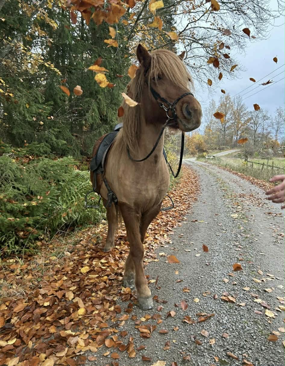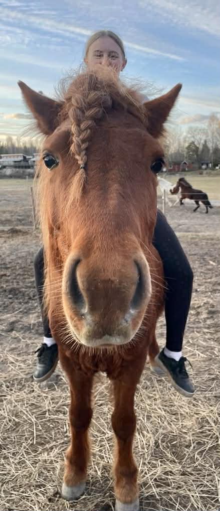 Ett rött sto med allt vad det kan innebära... Köptes då vi sökte genomtrygg "nybörjarhäst" men resan har varit lite skakig med många om och men, ska vi behålla? ska vi sälja? Överlag har stunderna varit fantastiska och känslan är att hon valt oss och vi hoppas och tror att hon kommer få bo kvar.